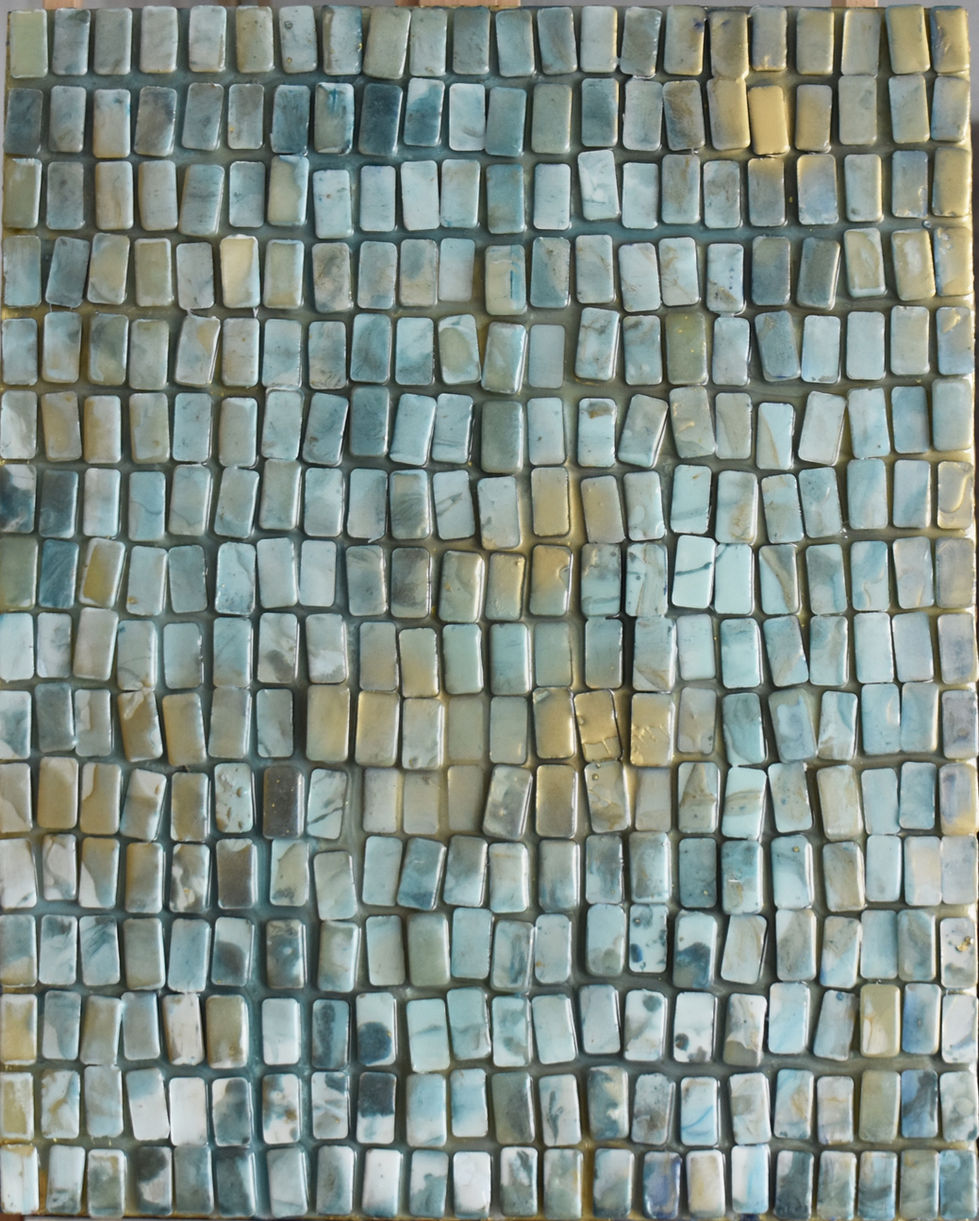 2022, hand-cast and poured resin and gold leaf on wood panel, 30 x 24 inches